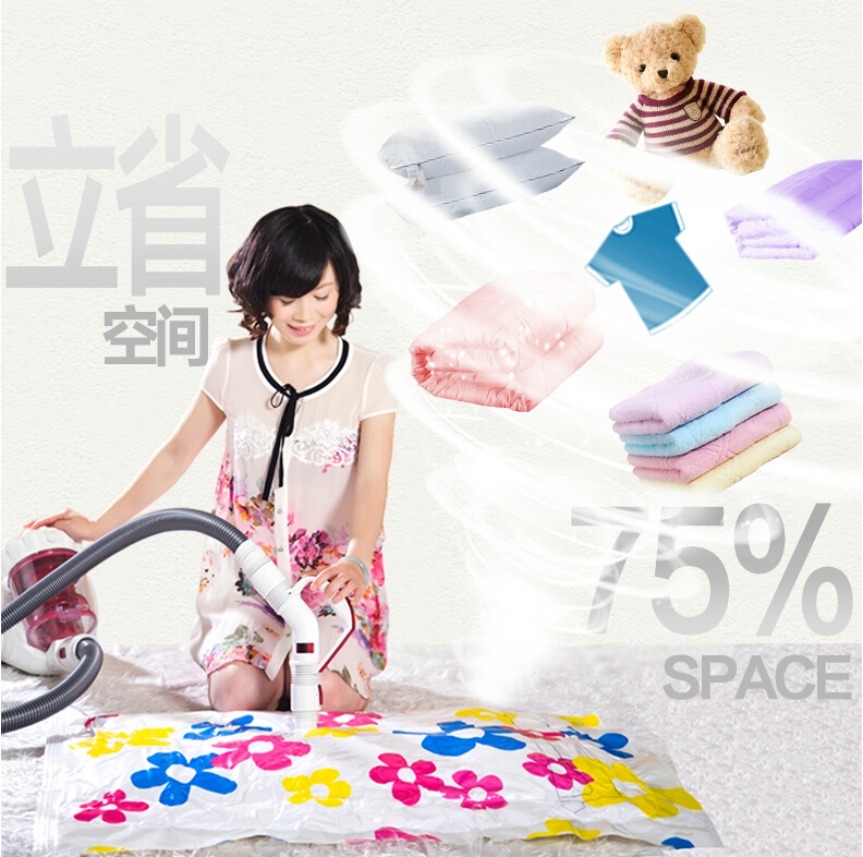 產品名稱:收納博士 保鮮膜壓縮形式: 袋壓抽氣式 材質: PA+PE材質 適用對象: 衣物 絨毛玩具 被子 套裝規格: 3大2中3小2手卷1泵